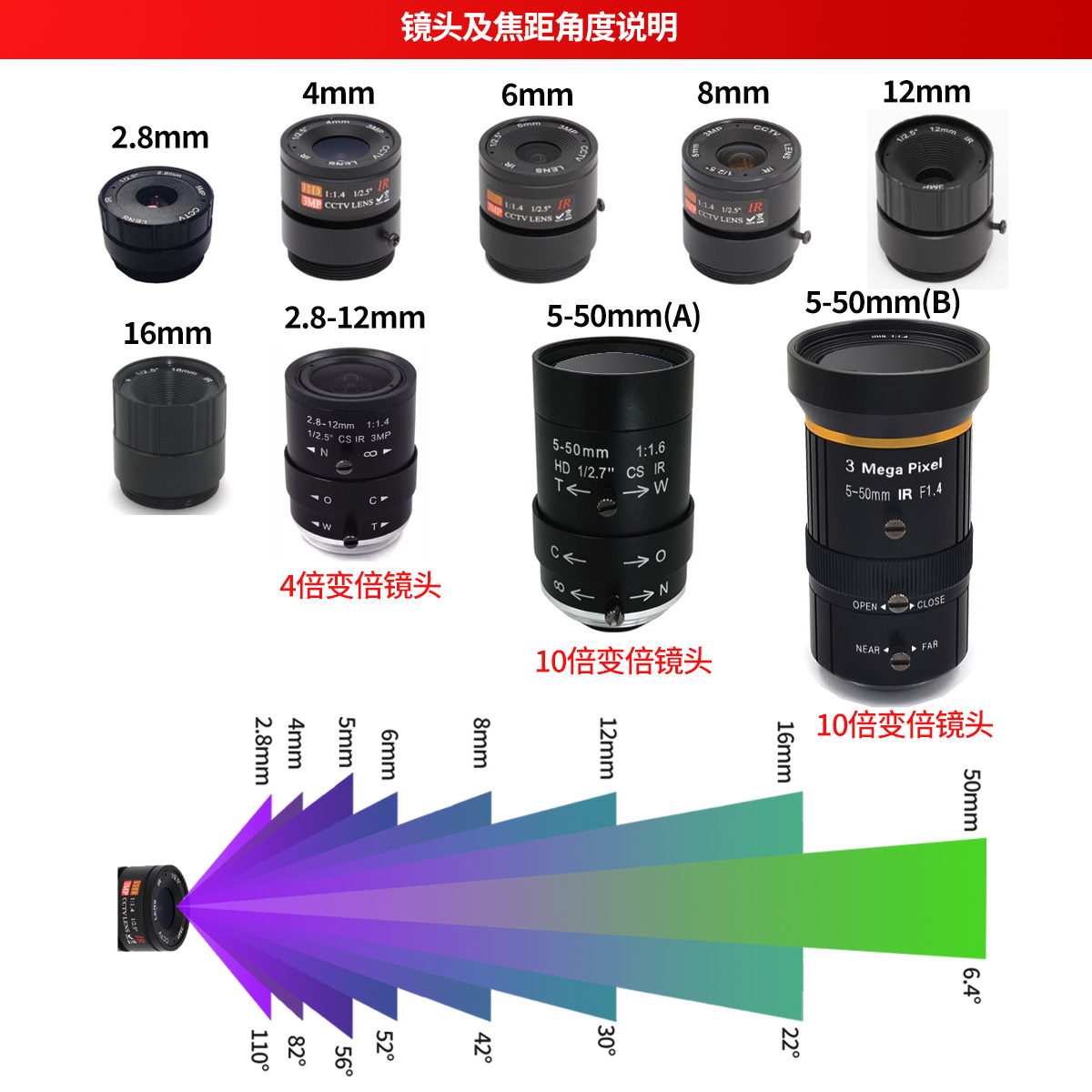 • Focal length: CS lens 2.8-50mm optional
